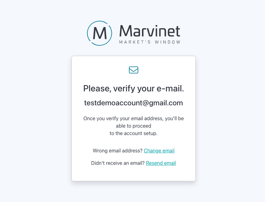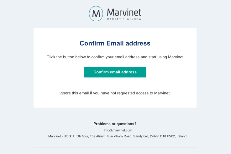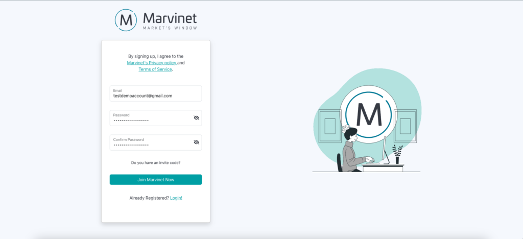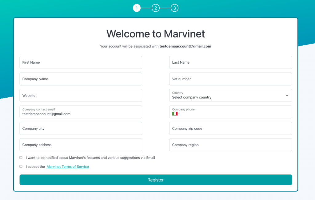 First, log on to https://platform.marvinet.com/register and fill in the required fields, entering your email and choosing a password